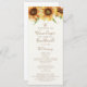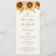 Vackert, solrosliknande Bröllopsprogram, designat med handmålade solblommor med stiliserande vattenfärg. Det här är en utformning av land-stil för vår, sommar och utomhusbruk i bröllop. Anpassa den här designen med din ceremoniinformation och på baksidan, med information om bröllopsfesten och tack. Bakgrunden färg är benvit, men du kan välja en fyllning färg efter eget val.