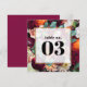 Ett bordsnummer i elegant och finare med bröllop med en blandning av vackra sommarblommor med magenta och anpassade svart typografi med genomskinlig vit bakgrund och guld ram. Blomsterspråket, som kallas floriografi, ger olika betydelser för olika typer och färg av blommor. Ro representerar till exempel kärlek, begonias symboliserar harmoni, dahlias betyder engagemang, ranunculus representerar charm och ögonblicksbilder betyder nåd.