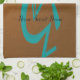 En vacker teal Kokopelli som spelar sin flute dekorerar kökshandduken. Det är en perfekt gåva till alla som kärlek sydväst. Anpassa den vackra Kokopelli-kökshandduken genom att lägga till texten eller ta bort den för att lämna den tom. Den är baserad på en originalbild biet av © One Artsy Momma.