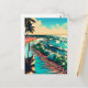 Snygg Tecknad Pap Art Stil Beach Scene Vykort