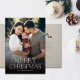 Dessa stilrena julkort med fotograttis innehåller en mall för foto som sträcker sig till kanterna, elegant modern typografi med texten "God Jul" och en liten handritad blomsterdesign på insidan i klassiska färger som djupgrön, vinröd och elfenben på en sandfärgad/beige bakgrund. Lätt att anpassa för vackra julkort som kommer att överraska alla dina familjemedlemmar och vänner.