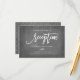 Detta snygga välkomstkort har snygga typsnitt och en kritbakgrund.
