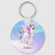En nyckelring med en bild av en enhörning med stort blått öga, rosa vingar och regnbåge och svan. Kawaii söt.