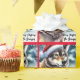 På vintern har en underbar varg med en julhatt i snö.
