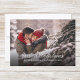 Stilfull, vit "God Jul" flat fotobaserad julkort med ett liggande foto med en svart till genomskinlig färggradient längst ner, ett klassiskt, vackert kalligrafielement och platser för ditt namn och din text. Baksida med exempel på högtidlig hälsningstext i grått. Använd denna lätt anpassningsbara designmall för att skicka unika välgångsönskningar till familj och vänner. © y.BEE PAPERIE #ZazzleMade #merrychristmascard #photochristmascard #personalizedchristmascard