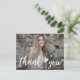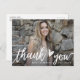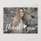 Denna design har en anpassad bild och vit text i skrivstil. Ändra gärna bilden och tackmeddelandet på baksidan.