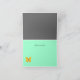 Stilrent tackkort i grått med grafik av en vit och mintgrön damcykel med en korg i vit flätning fylld med blommor och fjärilar som flyger runt den. Texten 'Tack' i mintgrönt på framsidan. Personlig text kan läggas till på insidan av kortet. Vackert tackkort för bröllopsdusch.