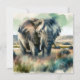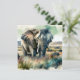 Hälsningskort med en afrikansk savanna-elefant i Afrika eller Asien som går på ängarna. Söt ai illustration utförd i en vattenfärg stil.