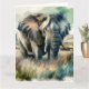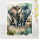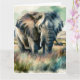Ett blankokort med en afrikansk savanna-elefant i Afrika eller Asien som går på ängarna. Söt ai illustration utförd i en vattenfärg stil.