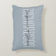 Lägg till för- och efternamn på typografi-kudde. Text läggs till i blå uppdaterad färgpalett med vit font. Bakgrundsfärg och typsnitt kan enkelt ändras i designverktyget. Maila mig på beachpausedesigns.com om du har frågor om denna eller någon av våra designer.