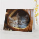 Denna hjärtliga bild fångar två bedårande kattungar hoprullade tillsammans inuti en urgröpt pumpa. Kattungarna, en rödhårig och en tabby, sover djupt och skapar en scen av ren tillfredsställelse och värme. Höstmiljön med nedfallna löv bidrar till den mysiga atmosfären.