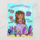 Ett sött och prisvärt sätt att inbjuda vänner till en liten flickas födelsedagsfest. En handritad folkkonst stil whimsical afroamerikansk eller latinamerikansk sjöjungfru och hennes undervattensvänner i starka färger flickans födelsedagsinbjudan.