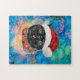 Snygga svarta katt jul present har en akvarell av en svart katt med en röd tomtehatt och en röd julkrage, och en bakgrund med en färgrik akvarellgalax.