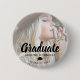 Knappen snyggt studenten med ett foto av student, en ceremonin i student, studenter namn, klassår och ord student i ett typsnitt.