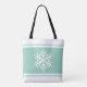 Den här festliga säsong-konstruktionen har en stor vit nordisk snöflinga inom grönten för lätt teal och vit rand.