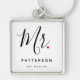 Snyggt Anpassningsbar Efternamn och datum Bröllop Fyrkantig Silverfärgad Nyckelring