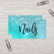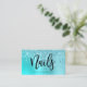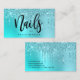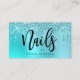 Affärskortet med den här fantastiska nagel-teknikern har faux aqua blue mint och turkos som droppar glitter metallic struktur och elegant calligraphy font.