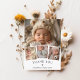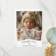 Vårt tack till snyggten är ett vackert och hjärtligt sätt att uttrycka tacksamhet! Den här eleganten har en modern, minimalistisk estetik som är både tidlös och chic. Framsidan har en fantastisk kollage med dina favoritfoton från baby som är inramade i ett tunt, vitt gräns för ett rent och sofistikerat utseende. Ett större huvudfoto från baby finns i mitten, omgivet av tre mindre bilder nedan, vilket skapar en underbar, lagrad effekt. Under fotona visas ett tacksägelsefullt brev med ett finslipat bokstäver där babyens namn är markerat i ett känsligt, handskrivet skript för en personlig, hjärtfull beröring. På baksidan finns det ett utrymme som väntar på ert anpassningsbar-tack-budskap och som ger er tacksamhet i ert eget ord.