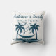 En snyggt och ett vackert strandhus i anpassningsbar dekorativ kudde / dyshion åt dig hem. Utformningen är 2 blå Handflatan träd och Hammock, hav och fåglar. En vacker personlig ödeskör för ditt kuster eller gästhus. All text kan anpassas och anpassas sedan till familjen namn och datum.