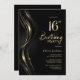 Snyggt Black and Guld 16:e Födelsedagsfesten Inbjudningar