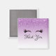 Tack magnet med trendigets snyggt design. Bakgrunden är en lila gradient färg med en bild av faux mousserande glitter som tappar från överkanten. Ett par giftigt söta ögonfransar under bilden av glitter.