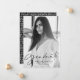 Modern studenten-meddelande med student-lodräts foto med "Student" i ett svart snyggt-överlägg. Anpassa bilden till studenten genom att lägga till student namn, namn och studenten. Baksidan av trendigets tillkännagivande i studenten präglas av en handdragen svart och vit mönster.