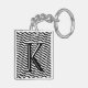 Lägg till personlig stil i dina tillbehör med en nyckelkedja som skapats av anpassningsbarna. Snyggt Black White Chevron Zig Zag Rand Monogram Keychain. Underbar presentidé.