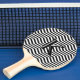 Lägg till personlig stil i ditt spelrum med en pingpongpaddel som är gjord av anpassningsbar. Snyggt Black White Chevron Zig Zag Rand Monogram Ping Pong Paddle. Underbar presentidé.