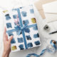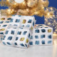 Snyggt Blått Guld-vattenfärgsrutor Mönster Presentpapper