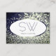 Snyggt Blue Silver Gnistra Glitter White Monogram Visitkort