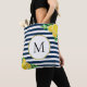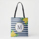 Snyggt Blue White Rand Sommar Lemon Monogram Tygkasse