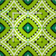 Sömlös dekorativ mönster med geometriska former i grönt, svart och vitt.