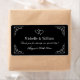 Anpassningsbarnas svarta och vita etiketter på vattenflaskan bröllop vin eller vår. Vätskemall med förreglande elegant i personlig med förreglande hjärtan och snyggt gräns med snabba vridningar. Skripttypografi i finare för namn av brud och groom och tack för ditt budskap. Använda som klassad bord-dekoration eller tack för gästerna vid party. Omfattar namn eller monogram plus datum för giftermål. Romantisk vintage med vackra hörn. Även bra för bröllop i retro-temat. Skapa dina egna etiketter för naturliga mineralvattenflaskor med denna klass-DIY-mall. Anpassadets bakgrund färg.