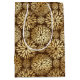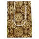 Vackra och snyggt presentväskor har stencil stil guld dahlias-blommönster på mörkens bruna bakgrund.