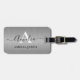 Elegant, Chic och modern formgivning av folie av rostfritt stål av silver grått metall med modernt monogram och namn i vitt och svart på framsidan. Baksidan är väl designad med dina kontaktuppgifter i vitt som kan vara personlig med ditt namn, mobilt, adress och e-post.