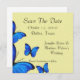 Vackblått och gult Spara datum meddelande kort, med ljusblå fjärilar. Anpassa texten till kostym efter dina behov. Extra-porto krävs för detta storleka kort.
