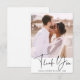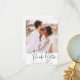 Med enkel och modern kalligrafi i bröllop tackar du dig för ett platt bildkort.