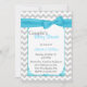 Snyggt pars barnduschinbjudan utförd i lätt grått och vit chevron zigzag mönster. Bilder av ett turkostigt dekorativt kanterat vitt textområde, i mitten, har ett turkospassande band och en söt båge överst. Baksidan görs i samma schevron mönster, med ett annat vitt textområde, i grund. Anpassa all text, fram och tillbaka till kostym som du behöver.