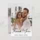 bakgrundsfoto av freepik.com chic-foto med handskrivet bröllop-foto än du kort,anpassningsbar. Två sidkort med två foton. På baksidan tackar du bröllop-meddelande.