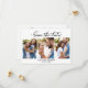 Kalligrafiskript med minimal Elegant och 3-fotofärgkort för Bröllop spara datum i svartvitt. Denna noggrant utarbetade utformning är skräddarsydd för det moderna bröllop, som framhäver en fantastisk romantisk allure. Med sitt snygga 3-foto-rutnätssortering och sitt handskrivna svan-teckensnitt kapslar de här korten contemporaryns elegans. Anpassa varje kort med dina uppskattade uppgifter om bröllop och bilder och erbjuda ett finslipat och sofistikerat sätt att tillkännage och fira din fantastiska dag.
