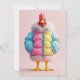 En viskös och sjudande 3D-utsmält kyckling står tryggt klädd i ett modernt, överdimensionerat puffer jacka i pastellskuggor av blått, rosa och gult, kompletta med en päls-putsad krage. Den lekande designen blandar humor och mode och skapar det moderna kycklingutseendet redo för en vinterbana.