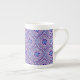 Söt Bone China Tea eller Coffee Mugg, med mönster av traditionella ogeformer i nyanser av Lila, plommon, Dazzling Blue and White.