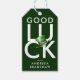Denna moderna, mörk grönt och vita snyggt-bricka för en St. Patrick-dag passar både vänner och familj- eller företagsgåvor. Det har ett stort fet svart skript som säger Lycka till, en vattenfärgsfärgad elegant grönt Irish hat och en anpassade text, allt på vit bakgrund. Baksidan är med en enkel ljus grönt.