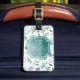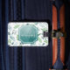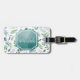 Snyggt Elegant Monogram Watercolor Foliage Luggage Tag. Har vattenfärgsfärgad löv i skuggor av grönt och blått.