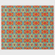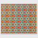 Turcityblått, sand, orange och rött kombineras i en folkkonst inspirerade mönster av en upprepande blomma. Den totala effekten är en vacker mosaik golv i tidvatten i ett hem eller ett emaljerat glas yta.