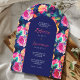 Gör din stora dag ljusare med den här Snyggten. Färga blommor är bröllopsinbjudan. Den här inbjudan är full av klara blommigtar i en livlig blandning av nyanser och ger dig firande glädje och energi. Den moderna layouten och den lekfulla men ändå elegant-typografin gör den till perfekt för trädgårdsbröllop, utomhusceremonier eller festliga soiréer. Med en harmonisk blandning av charm och sofistikering anger denna design tonen för en dag fullt i kärlek, skratt och färg. Anpassa den så att den stämmer överens med ditt unika stil och låt bröllop blomstra från det allra första intrycket.