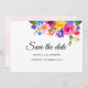 Elegantens chic färgade vilda blommor bröllop tack vare att du har ett kort med vackra blommor och löv. Meddela din speciella dag i stil med denna snyggt färgstarka, ljusa vilda blommor bröllop spara datum. Den här designen har en pulserande blandning av vilda blommor med rosa, gult, orange och lila och utstrålar glädje, romantik och naturskönhet. Elegantens typografi kompletterar den livliga blommigtens arrangemang och skapar ett nytt och modernt utseende som perfekt anger tonen för firande i bröllop. Det här är perfekt för bohemi, trädgård, rustik eller utomhusbruk bröllop, och det här sparar datumkortet är ett vackert sätt att dina spännande nyheter och se till att dina gäster markerar sina kalendrar för din stora dag.