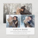 Den här sparan på snyggten har vårt datumkort en fotokollage som består av 2 foton på framsidan och 1 bild på baksidan. På baksidan finns extra-text som ger ytterligare information om bröllop.