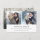 Den här sparan på snyggten har vårt datumkort en fotokollage som består av 2 foton på framsidan och 1 bild på baksidan. På baksidan finns extra-text som ger ytterligare information om bröllop.