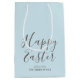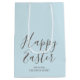 Säg "Glad påsk" med den här snyggtens presentväska, med handskrivet skript och din familj namn. Ett enkelt sätt att göra din Påsk-gåva ge eller party favors mer speciell. Färg: pastellblått och chokladbrun.